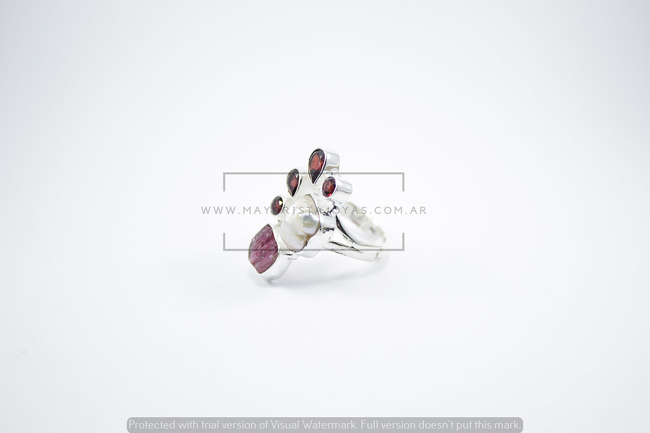 ANILLO MADRE PERLA Y DRUSA CUARZO ROJO (PAP091)