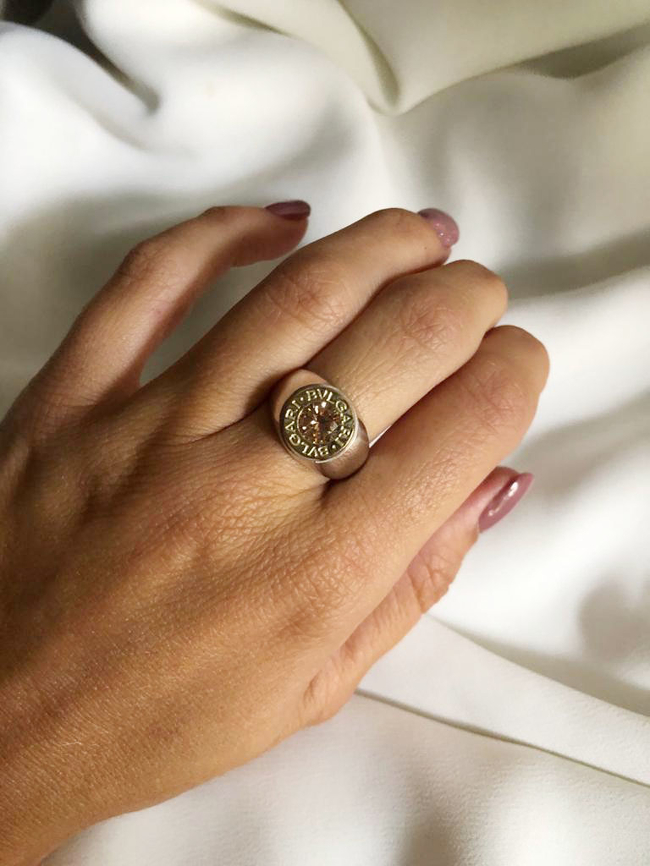 Anillo modelo bulgari. Cubic color ámbar
