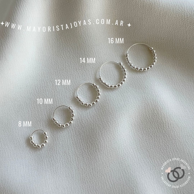 par de argollas bolitas de 16 mm con cierre cubano. Medida 6 de 6.