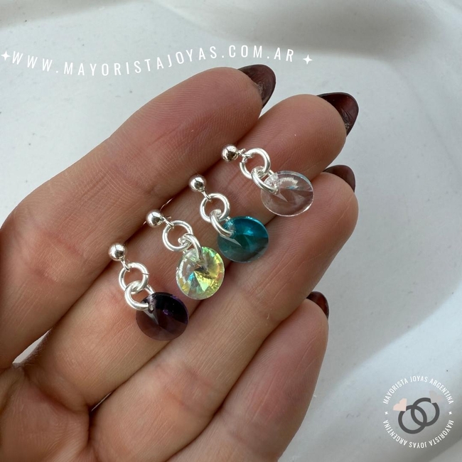 aros plata 925 y cristal colgante. largo: 1.5cm
