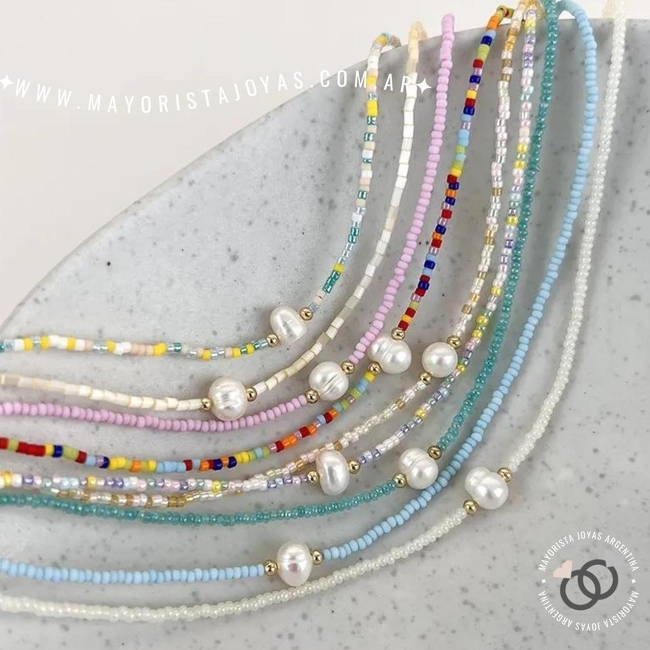 collar cristales y perla. largo regulable de 40cm a 45cm