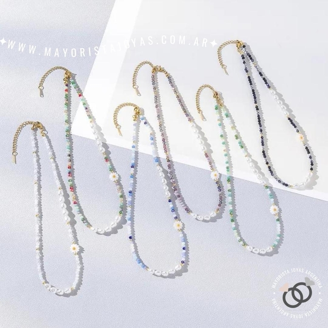 collar con cristales y perlas. largo regulable de 40cm a 45cm