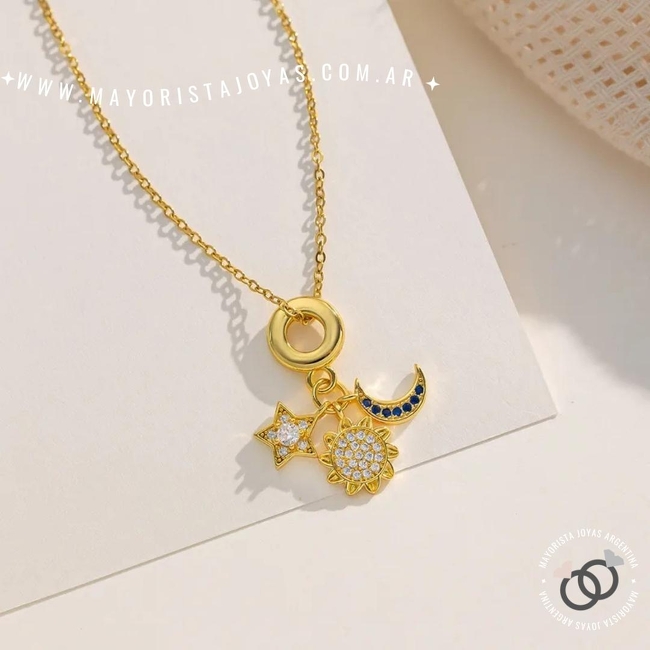 collar de acero quirurgico.multiples dijes con cubic._x000D_ largo regulable de 40cm a 45cm.
