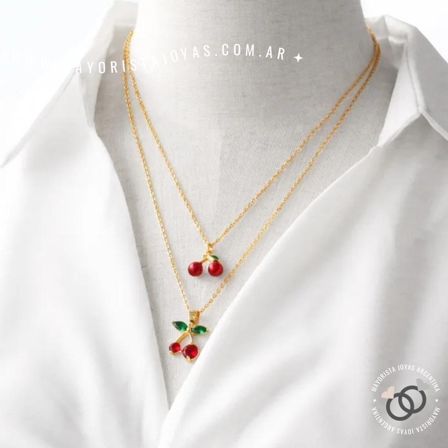 collar de acero quirurgico. largo regulable de 45cm a 50cm. cerezas con cubic