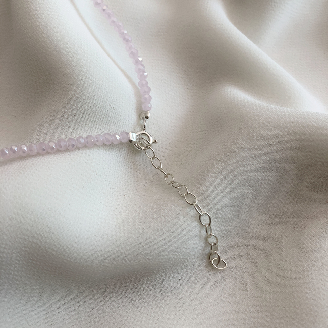 cristales y bolitas de plata . Largo regulable