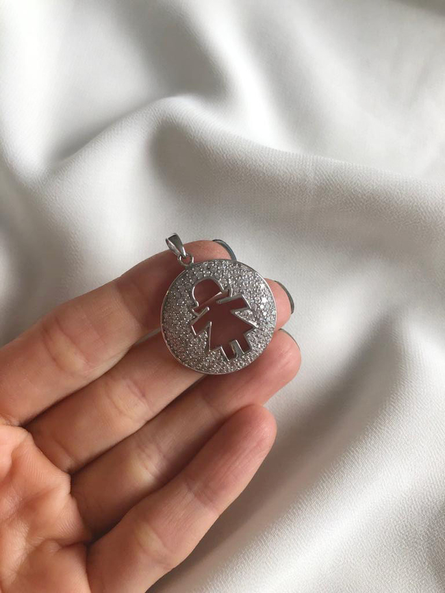 Medalla nena micropavé calada. Diámetro: 25 mm