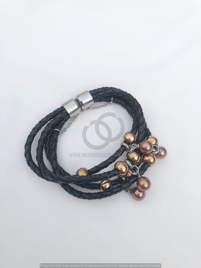 PULSERA ACERO Y CUERO ( 6135)