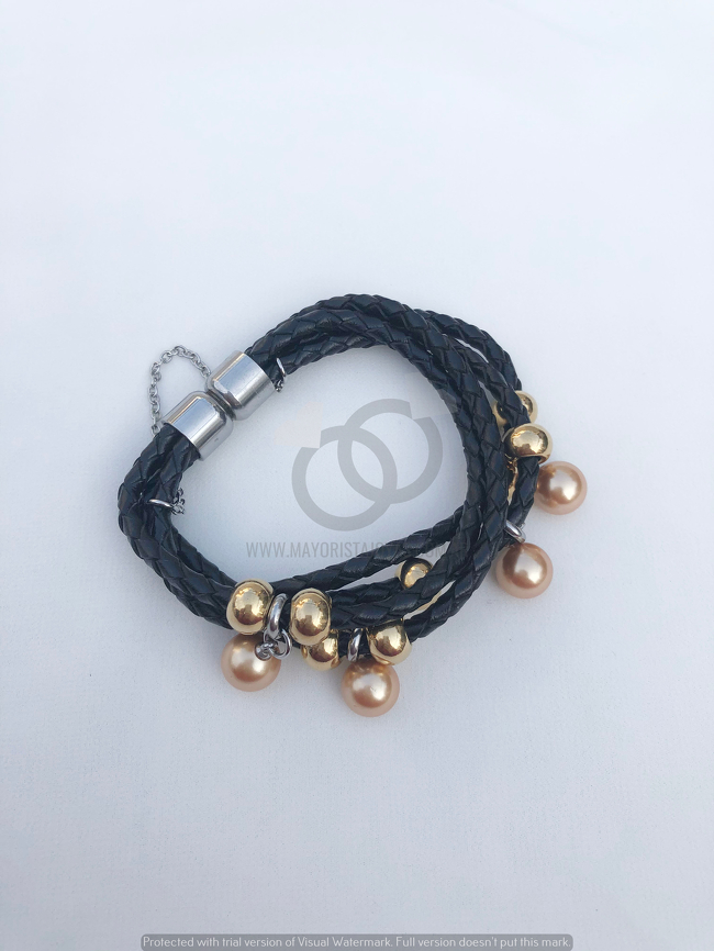 PULSERA ACERO Y CUERO( 6158)