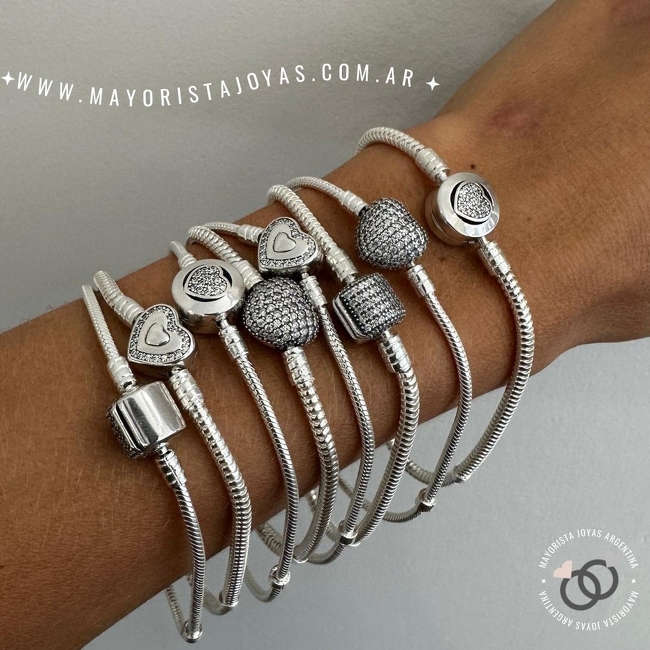 Pulsera tipo pandora. Grosor: 2.5 mm. Largos disponibles: 16,17, 18, 19 y 20 cm