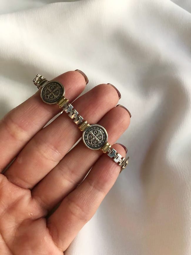 Dijes San Benito doble cara. Largo: 16.5 cm