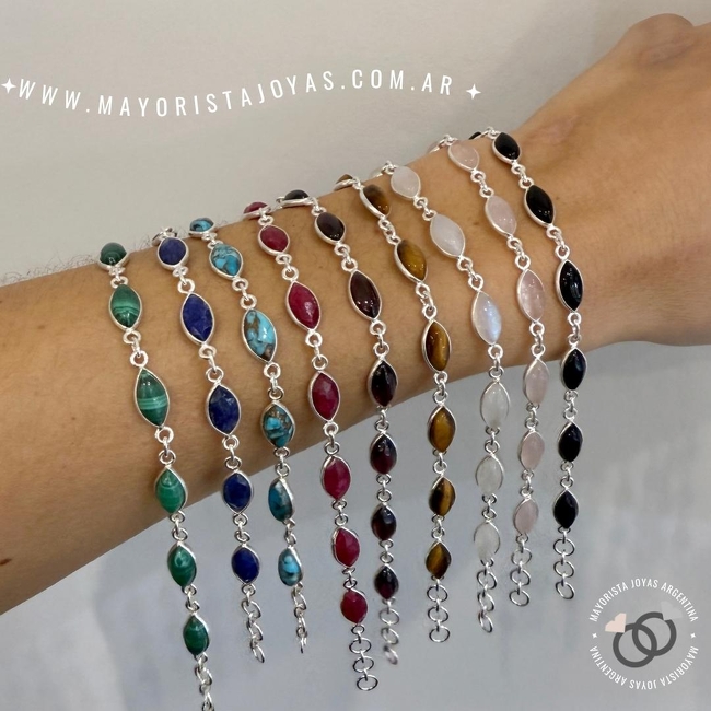PULSERA PLATA Y PIEDRAS (PBN0173)